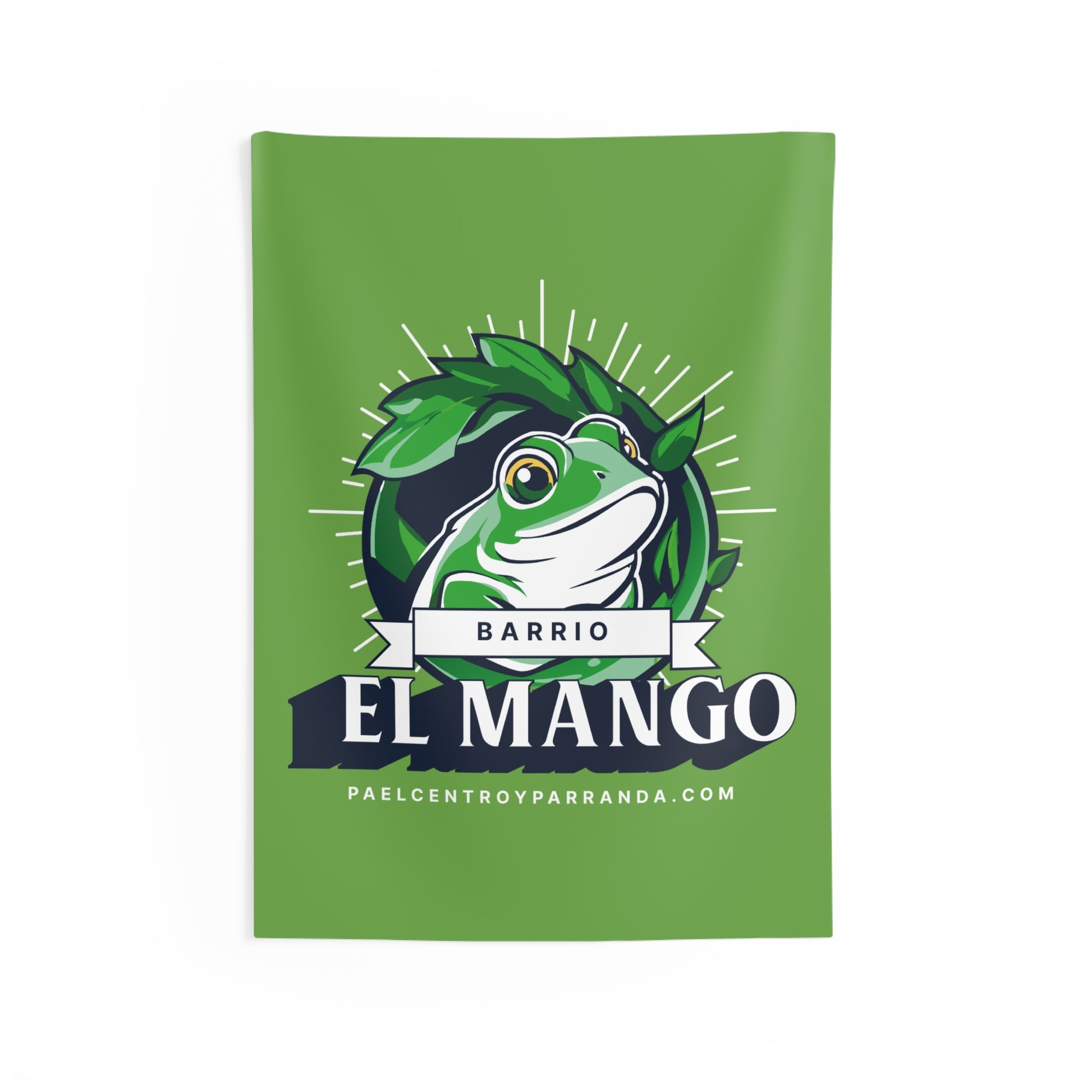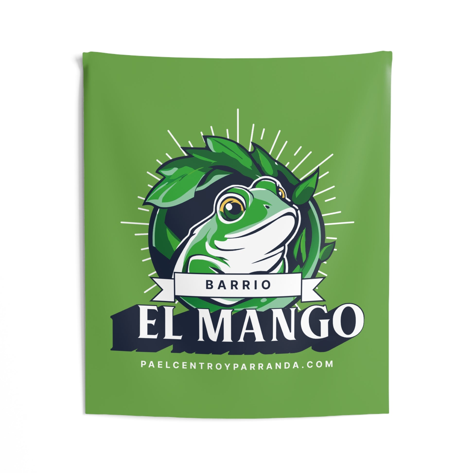 Bring a playful, bold splash of color to a living room, studio wall, or rehearsal space with this indoor tapestry. The bright green field centers a lively frog logo framed by leaves and vintage banner typography—an emblem that reads like a neighborhood crest. It feels energetic and local, the kind of piece that sparks conversation over music, late-night gatherings, or a morning coffee. Lightweight and drapey, it adds instant personality whether hung flat, clipped on a rod, or layered behind a couch for depth. The look suits folks who love vibrant street-art vibes, community roots, and a touch of tongue-in-cheek charm at themed parties, music nights, or casual home refreshes.
